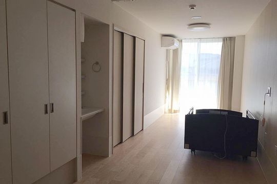 | 【居室設備】 | ミニキッチン、洗面室(洗濯機置場付)、温水洗浄機能付暖房、便座、暖房機能付浴室乾燥機、インターフォン、給湯器(キッチン、浴室、洗面台)、エアコン、二重床、24時間換気システム、緊急コール(居室、トイレ、浴室)、生活リズムセンサー(安否確認設備)、スプリンクラー |