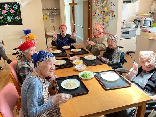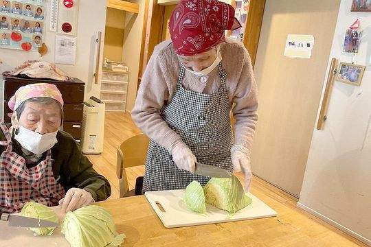 認知症の方が小規模な生活の場で少人数(5人から9人)で食事の支度や掃除、洗濯などの家事をスタッフと共同で行い、家庭的で落ち着いた雰囲気の中で生活を送ることにより、認知症の変化を緩やかにします。