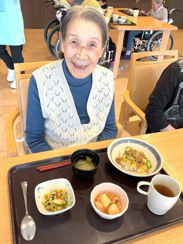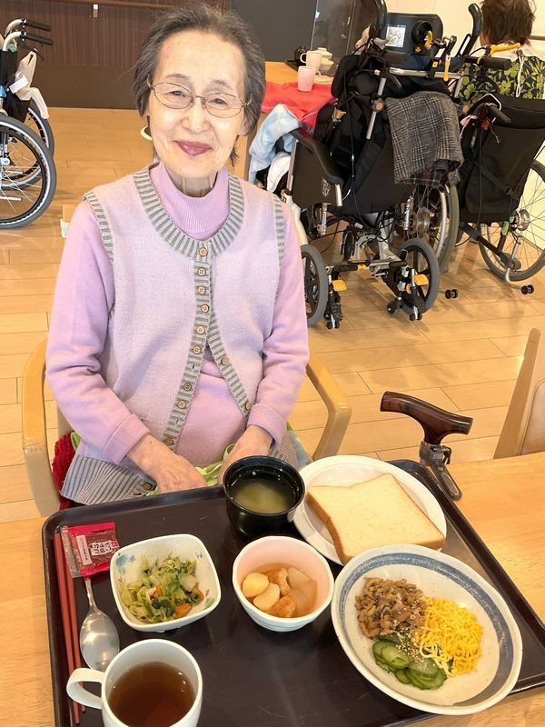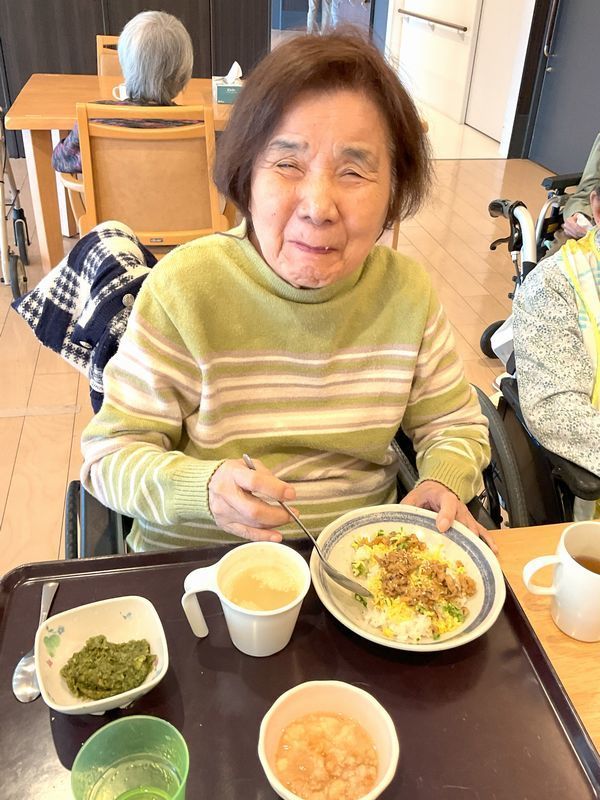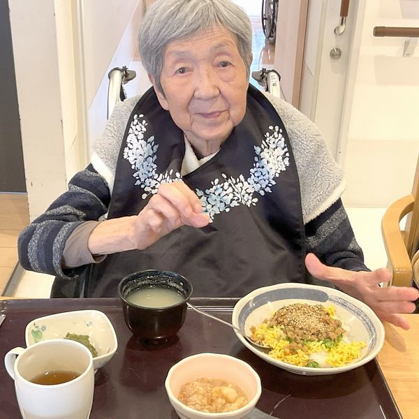 最近は「恵方巻」がすっかり定着して、各家庭でも節分の定番となっているようですが、この日の昼食は「ちらし寿司」。皆様ご飯のフタを開けると「今日はちらし寿司なんだね!」と嬉しそうでした♪