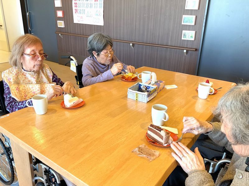 運動した方がケーキも美味しく召し上がれる・・・というのは、私たちの勝手な想像で、入居者の皆様はとにかく美味しいケーキに大満足のご様子でした。