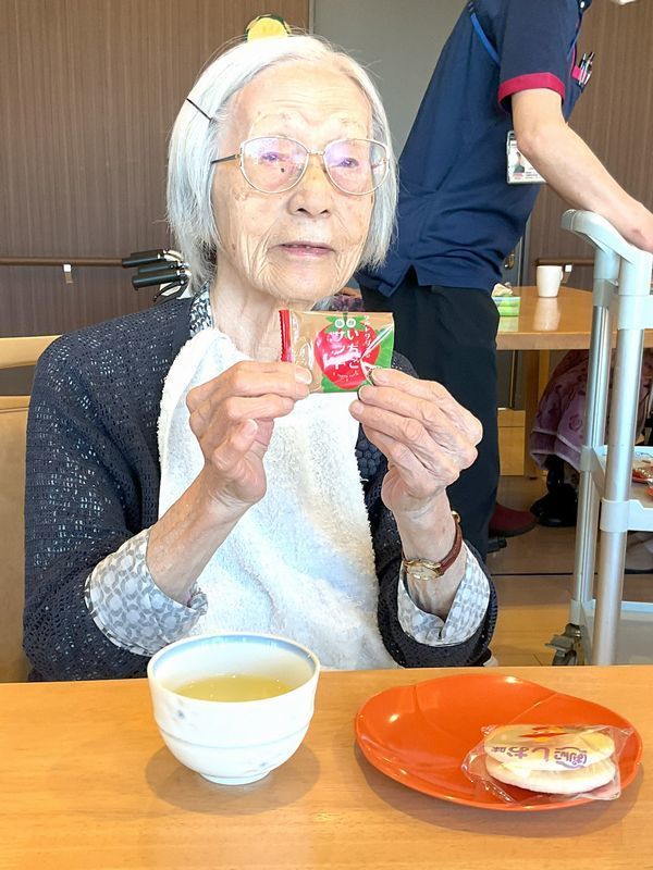普段あまり召し上がらない方も「おせんべい好きなの」と時間をかけて全部召し上がっていました。しっかりと噛んで味わい、味覚的にも感覚的にも良い刺激を得られたのではないでしょうか。