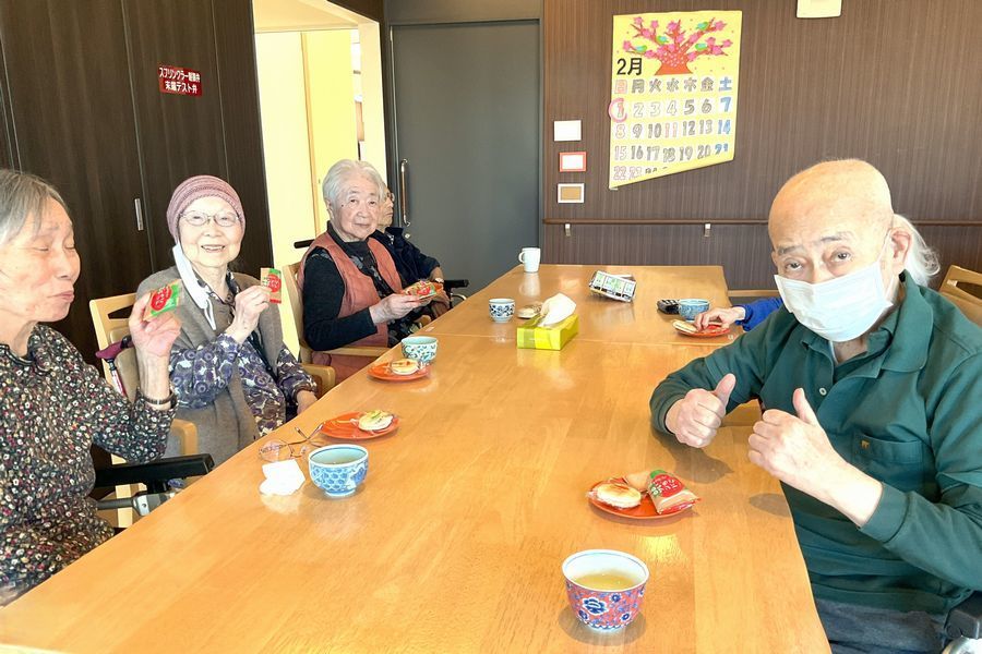 あすも市川では2月14日に2階で誕生日会を行いました。