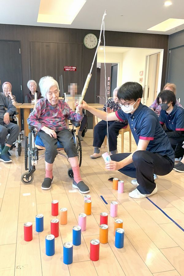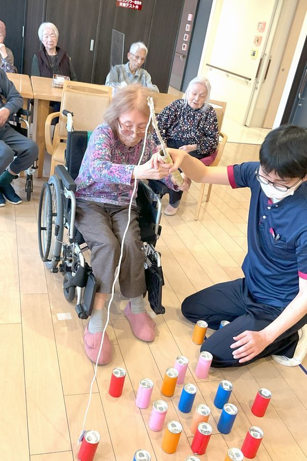 まずスタッフ数名で行い、見本をお見せましたが、いざ入居者様の番になると、勝った方がどうするのかわからなくなったり、遠慮してか?ヘルメットをかぶるまで待っているかのように攻防が続き、10回程続いたこともありました。