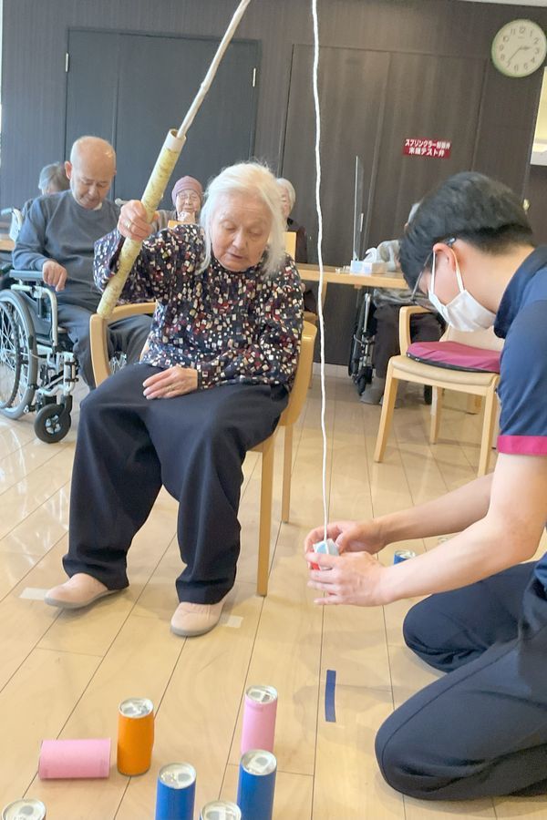 あすも市川では3月11日と18日に各階でレク『缶釣り』を行いましたので、その様子を