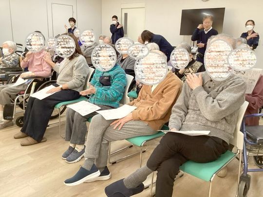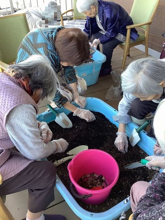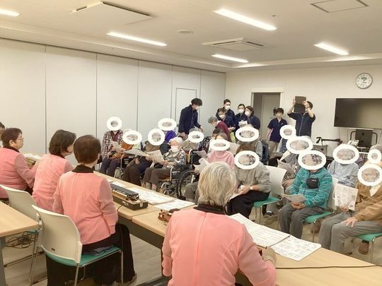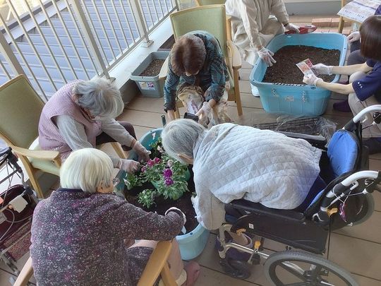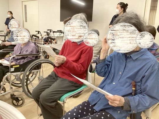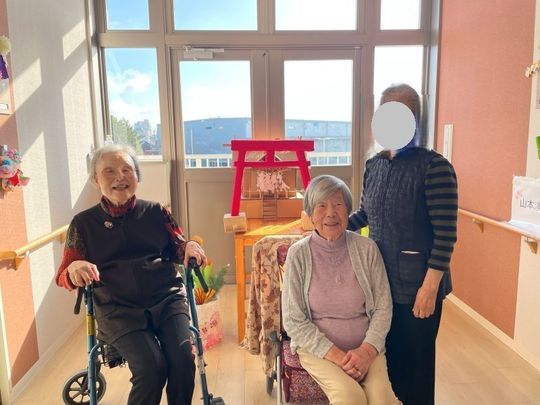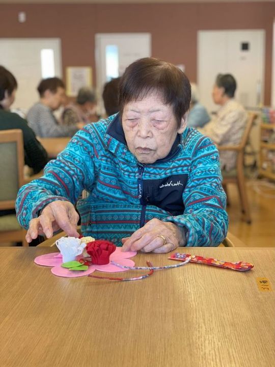 明るい日差しの差し込む中、桜ユニットに他ユニットの方々も集合して、わいわい賑やかに「桃の節句飾り」を作りました。