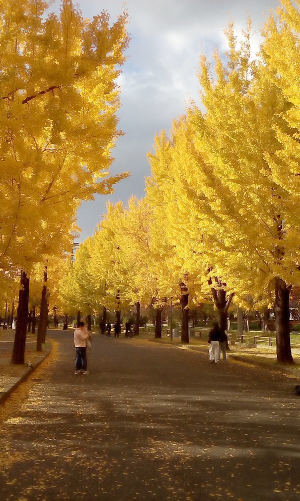天気良く、寒くもなく、すごく過ごしやすい最高の紅葉日和でした。黄色く紅葉したイチョウ並木に陽が当たり、素晴らしく輝いていました。たくさんの人が見に来ておられました。利