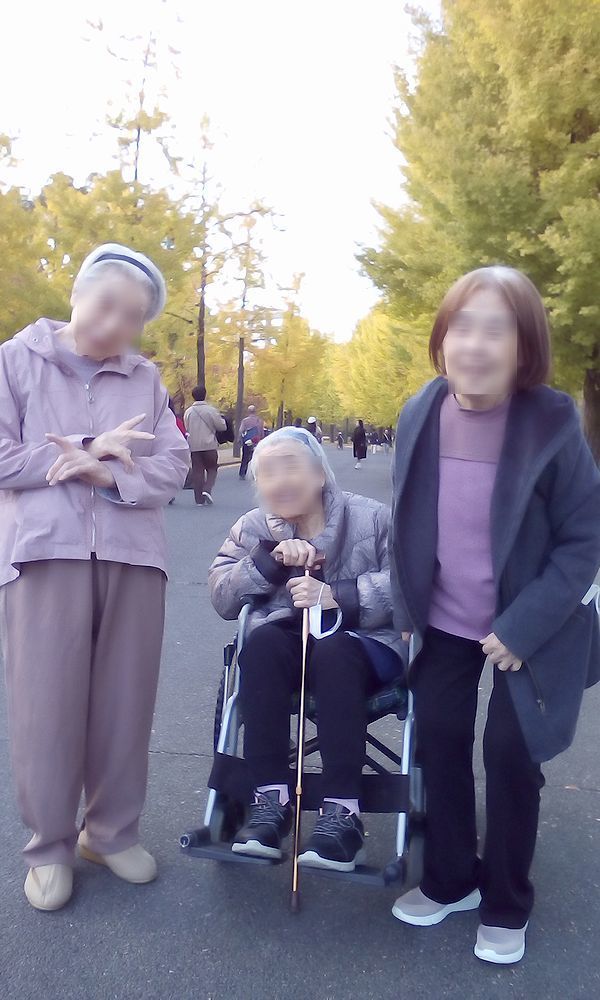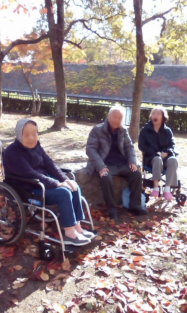 帰り際に大阪城内を走っている汽車型のバス(ロードトレイン)が利用者様の前を通ったので、利用者様みんなで手を振ると乗客の方々も手を振り返して下さいました。