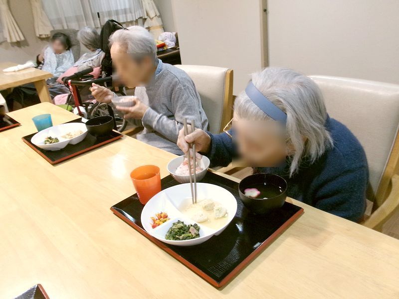 お雑煮もありお正月気分を味わっておられました。