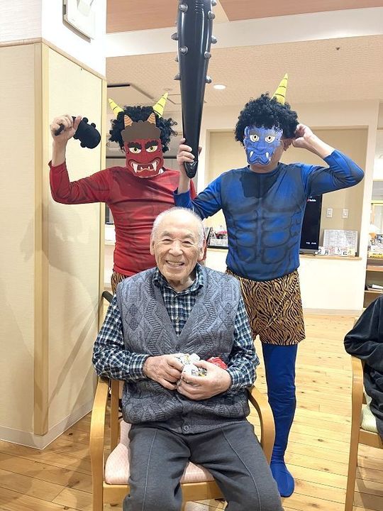 2/3は節分だったので、迫力のある赤鬼と青鬼をめがけて、豆に見立てたボールで豆まきを行っていただきました!