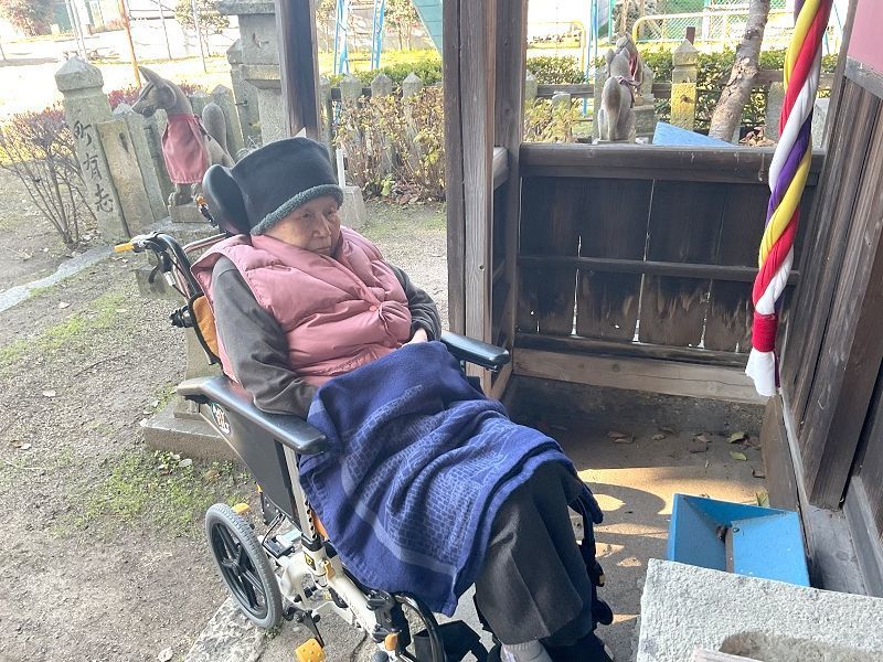 神社の鈴を鳴らして熱心に拝まれたり、境内を軽く歩かれたり楽しまれていました。