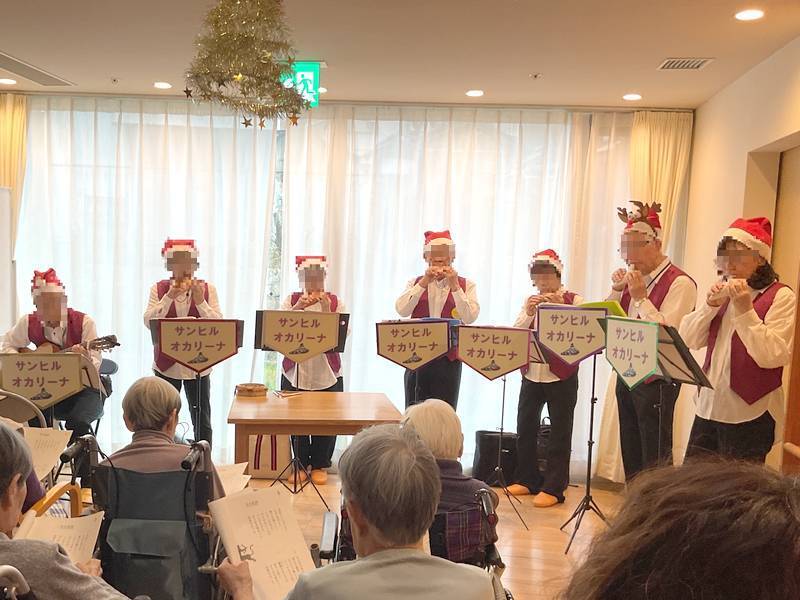 冬の曲やクリスマスの曲を演奏して下さり、ご入居者様もその演奏に合わせて歌って下さりました。