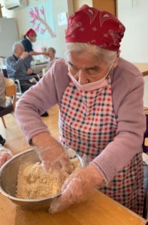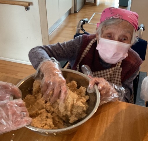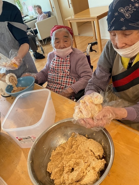 企画の段階で、皆様に味噌作りの経験があるかお伺いしましたが、その時は皆様「作った事ないわ!」と仰っておられたのですが、味噌づくりが始まると「そういえば昔こうやって作ってたな~」「空気入れない様に丸めないと!」等色々と思い出されたようで、とても楽しんで頂けました。