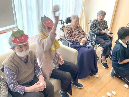 2月3日節分の日に入居者様と一緒に豆まきを行いました。