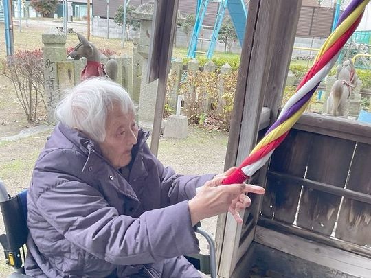 施設近くの神社に、お正月の初もうでに行きました。