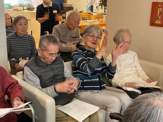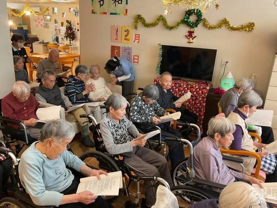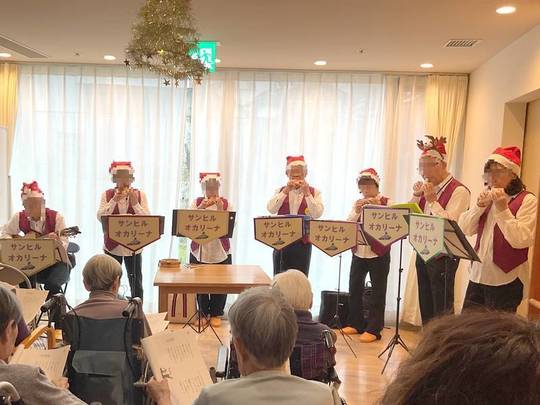 冬の曲やクリスマスの曲を演奏して下さり、ご入居者様もその演奏に合わせて歌って下さりました。