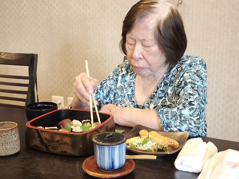 敬老会は毎年近所のお寿司屋さんから桶のお寿司を出前していただいていますが今年はなんと!当日のご利用者様全員でランチに出かけ敬老会をおこないました。