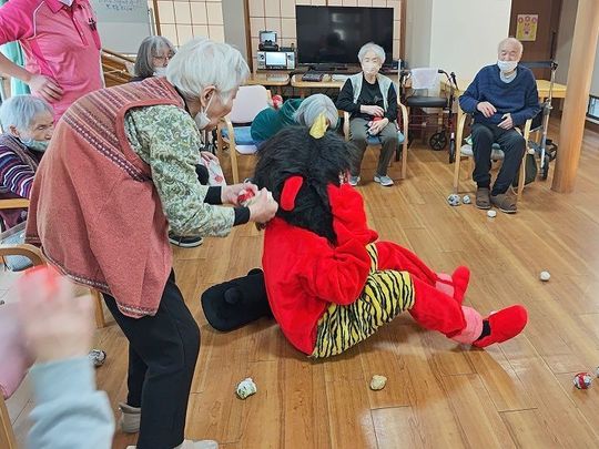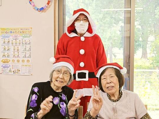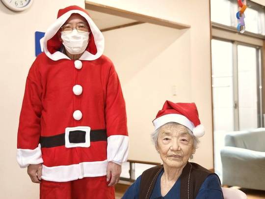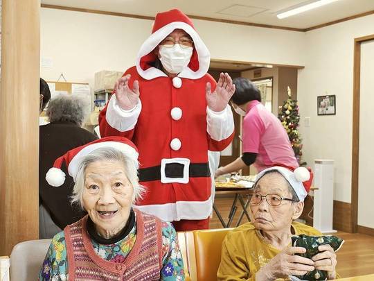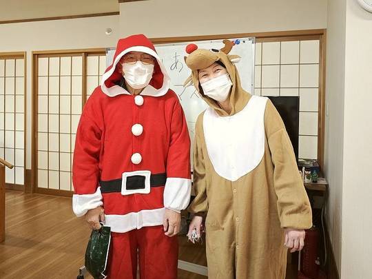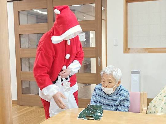 サンタクロースに扮していただいた利用者様とトナカイのスタッフからクリスマスプレゼントをもらい「いくつになってもプレゼントは嬉しい!」と感激されていました。