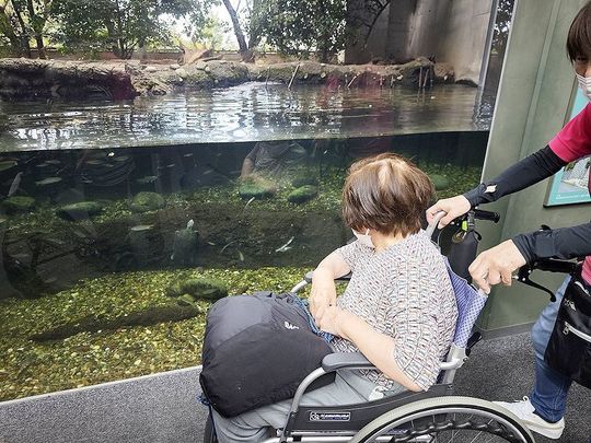 久しぶりの水族館に皆さん喜ばれ「大きい魚やな~」「鮎がいる」「大きい亀!すごいね」と話されていました。