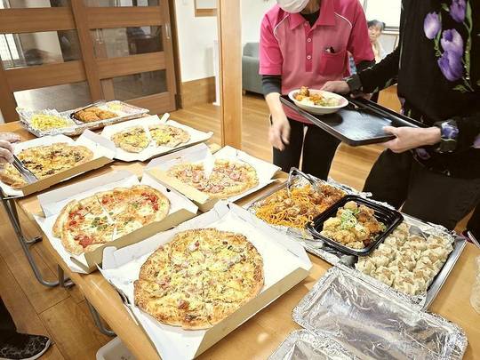 みなさん「美味しい!ピザ久しぶりに食べたわ」「すごいごちそうだね」と喜ばれていました。