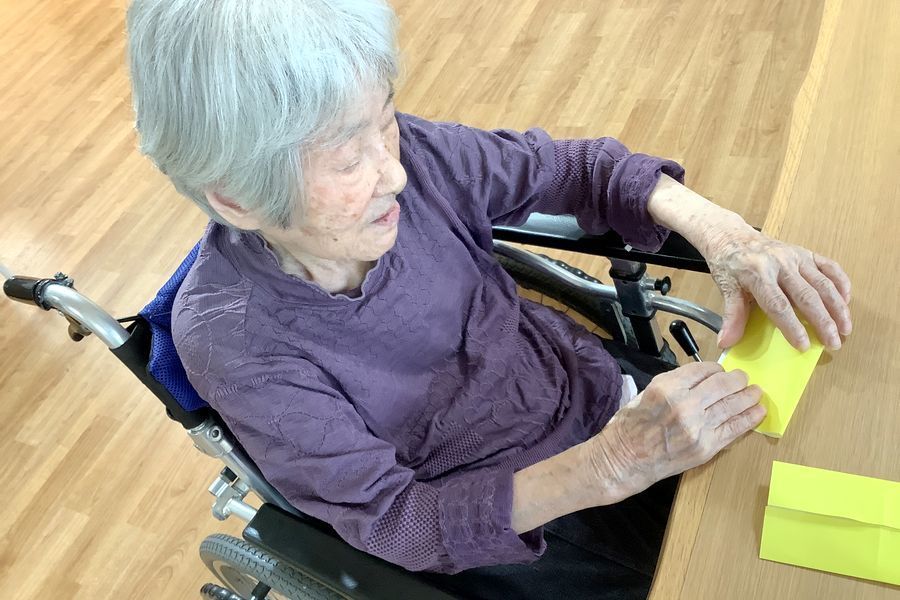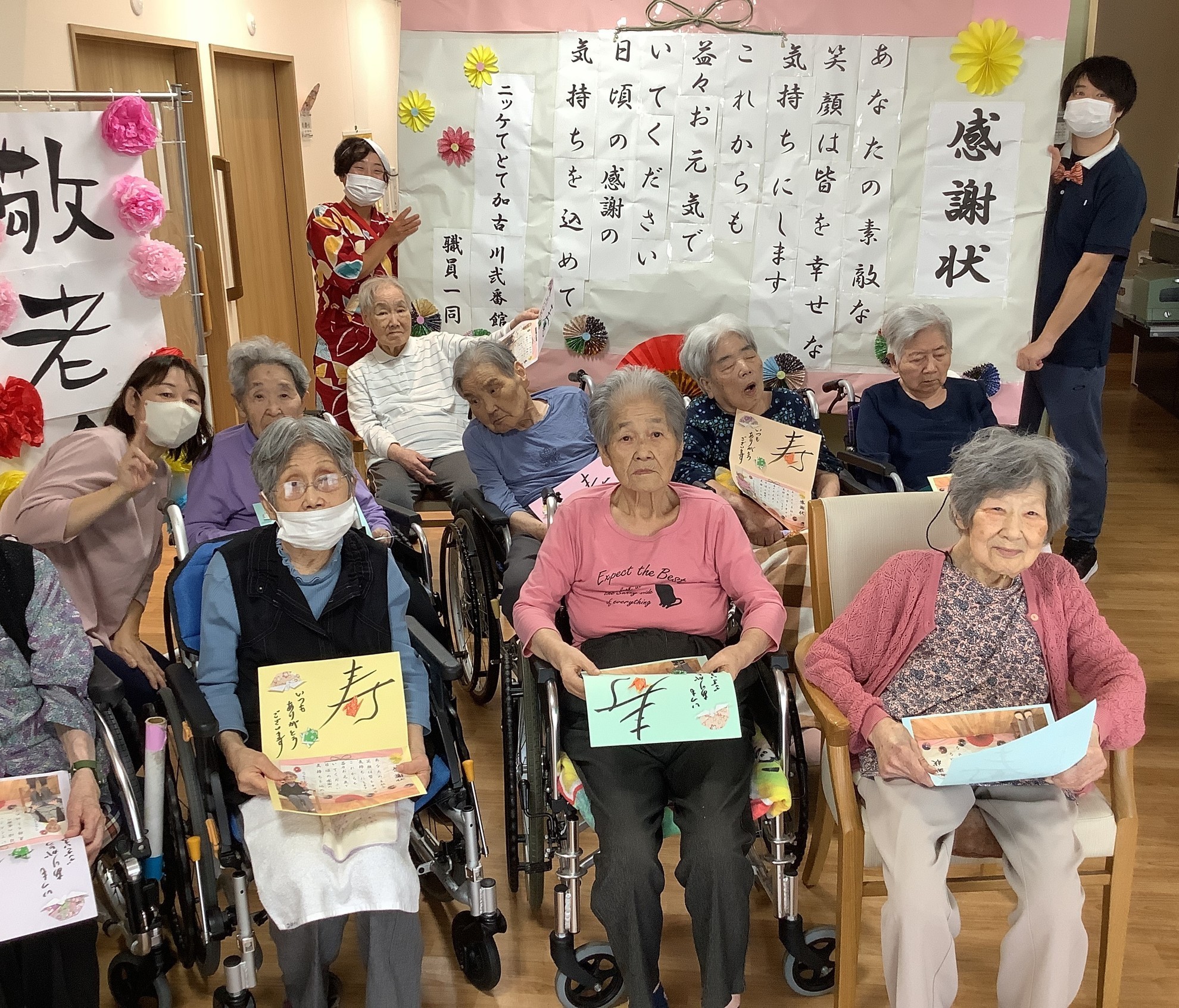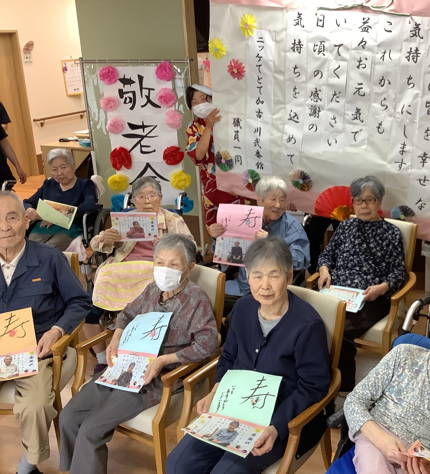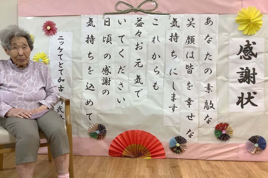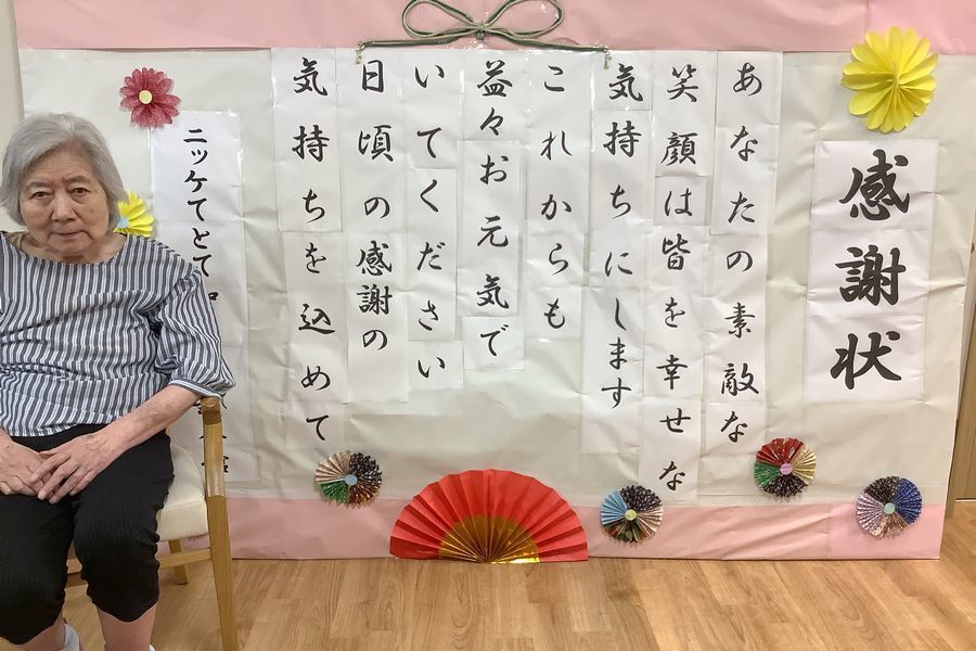 敬老会に向けて、入居者様と大きな感謝状づくりを行いました。
