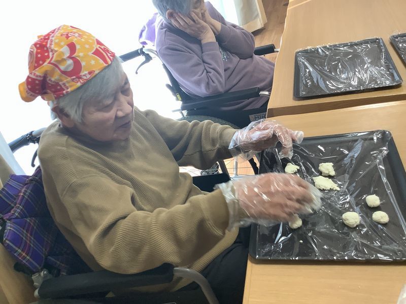入居者様には、白玉粉と豆腐で団子を作っていただきました。