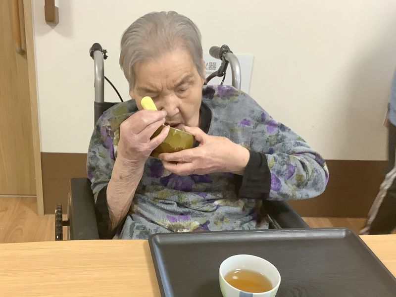 1月14日、鏡開きのぜんざいのおやつレクを行いました。