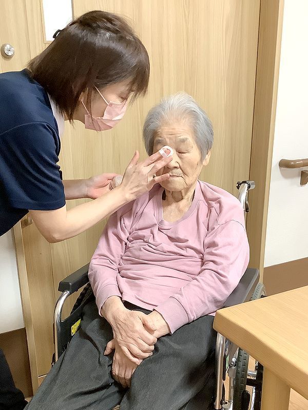 「お化粧をするのは久しぶりやわぁ」「どの色がいいかな?」とお化粧の時間を楽しんでいただき、メイク後は皆様の表情もぱっと明るく素敵になりました。