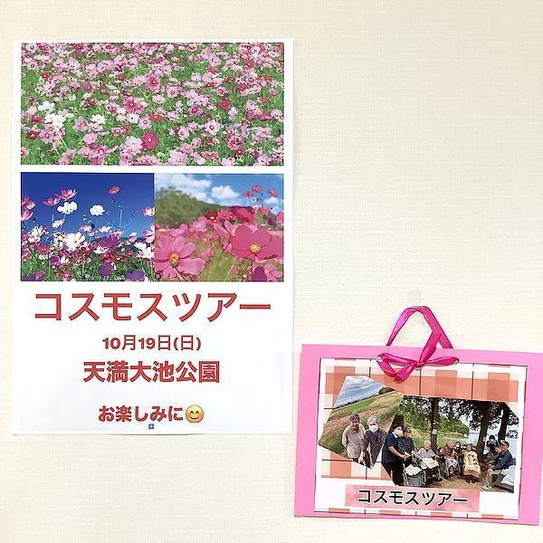 当日までフロアにポスターを貼り、入居者様、面会に来られた家族様も興味津々で楽しみにされていました。