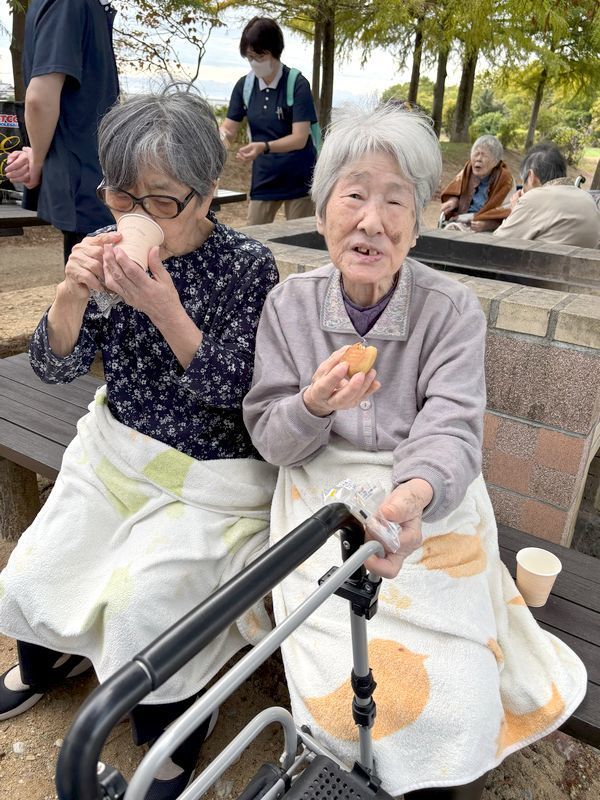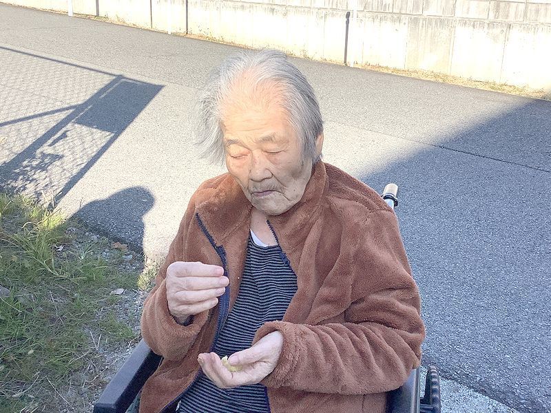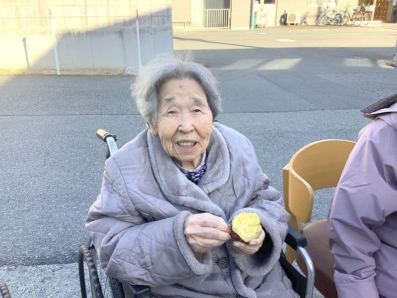 日没も早くなってきており、秋らしい日差しの中でお芋を焼き、寒そうにされながらも「美味しい」「温かいわ」と召し上がっておられました。