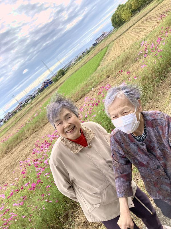 現地ではベンチでゆっくりお茶やお菓子を食べたり、コスモスを見たり公園を散策したり、犬の散歩や赤ちゃん連れの方、お子さん連れなどたくさんの方とお話したりとても楽しく過ごすことができました。