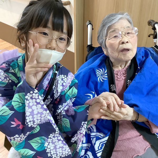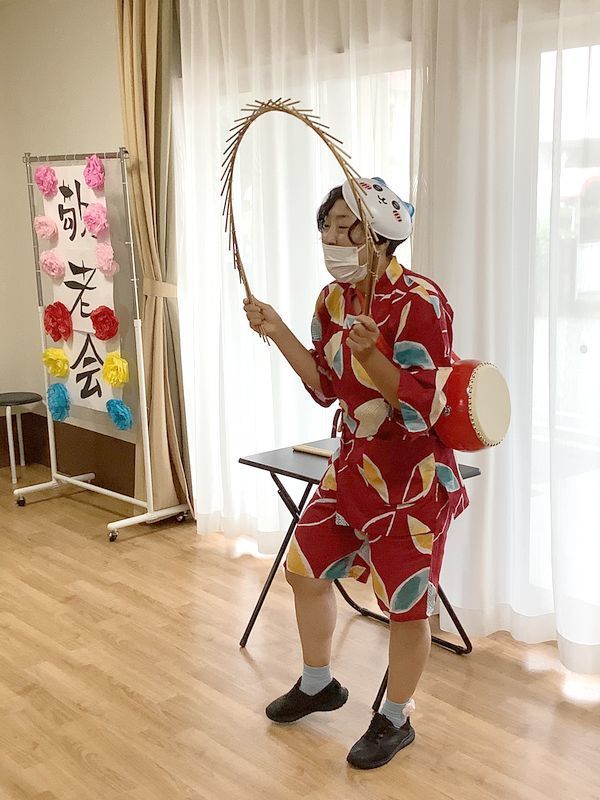 当日は、2ユニットの入居者様が一堂に会し職員のお子様の参加もあり、笑顔で盆踊りが始まりました。