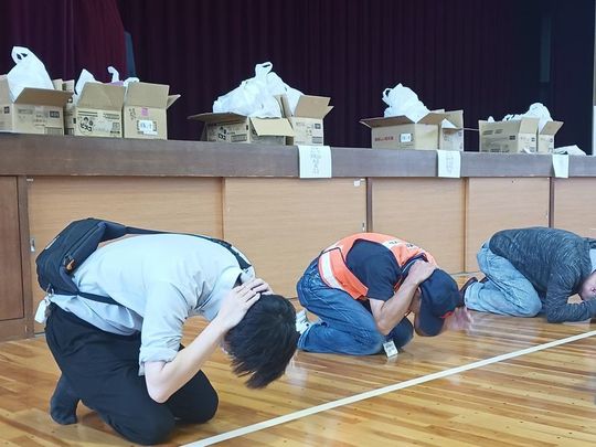 当日は、甚目寺地区の地域住民約100名が参加され、あま市危機管理課職員の方の講話や消火訓練、AED訓練などを地域住民の方と共に参加。