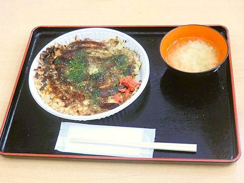本日のお昼は、地域で人気の「喃風」さんのお好み焼き(豚玉)でした。