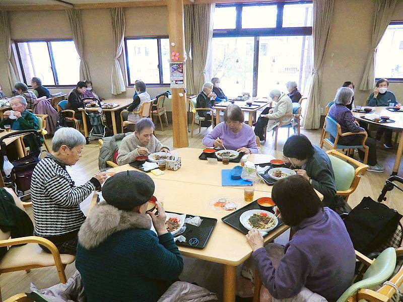 利用者様からは「味付けがちょうどええ」「お肉が柔らかくて食べやすいわ」といった声が聞かれ、ほとんどの方が完食されていました。ふっくらと炊き上がったご飯と唐揚げのコンビネーションが気に入られたようです。皆様ニコニコ顔で召し上がっておられました。