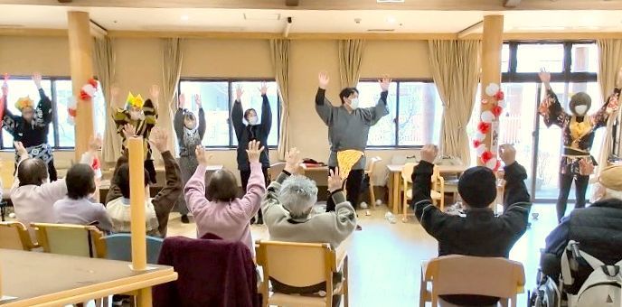 ☆ダンス…以前踊ったことのあるよさこいとソーラン節を女性介護職員と事務員の2人を加えて踊りました。