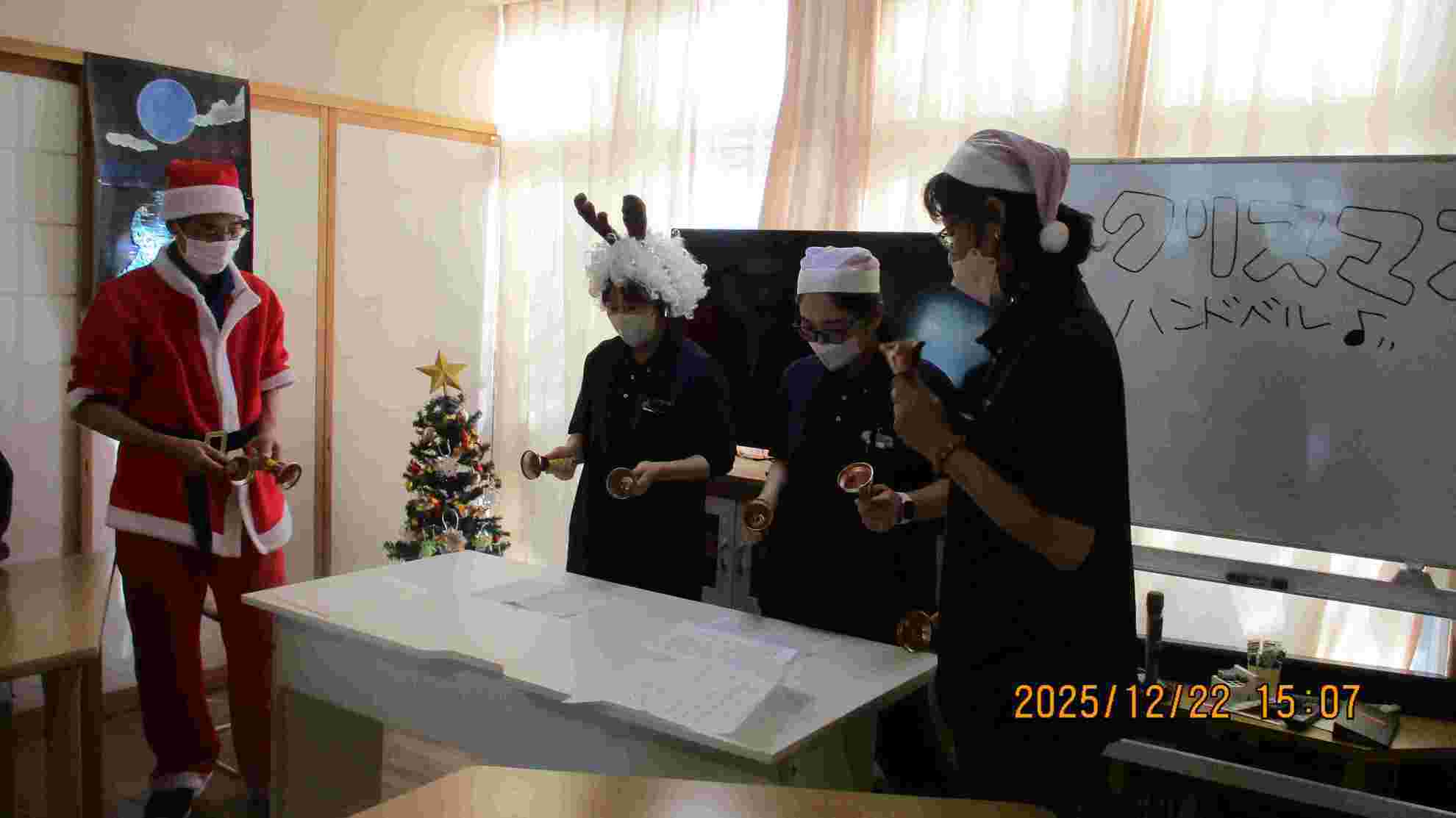 また、職員のピアノ弾き語りに合わせてクリスマスソングを合唱し、懐かしい曲に自然と笑顔がこぼれるひとときとなりました。