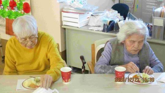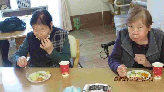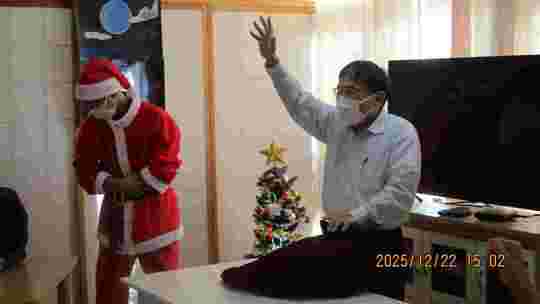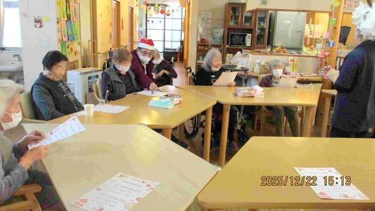 また、職員のピアノ弾き語りに合わせてクリスマスソングを合唱し、懐かしい曲に自然と笑顔がこぼれるひとときとなりました。