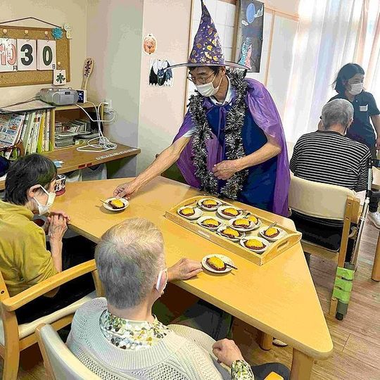おやつには、ハロウィンも近いとの事で職員が仮装してスイートポテトをお配りました。