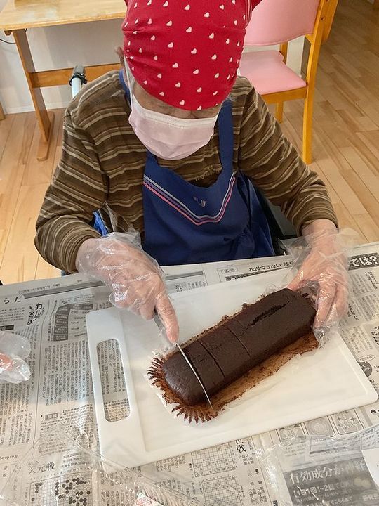皆様が協力してケーキ作りを行いました。
