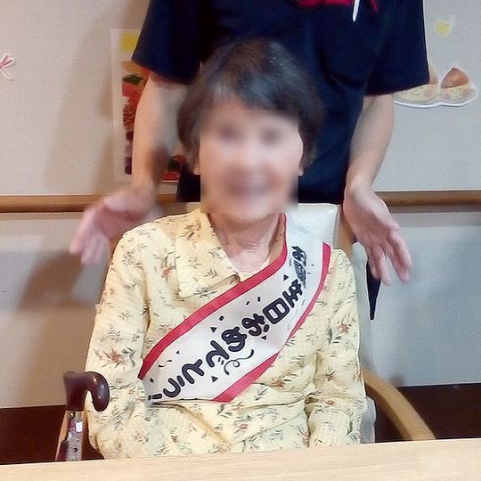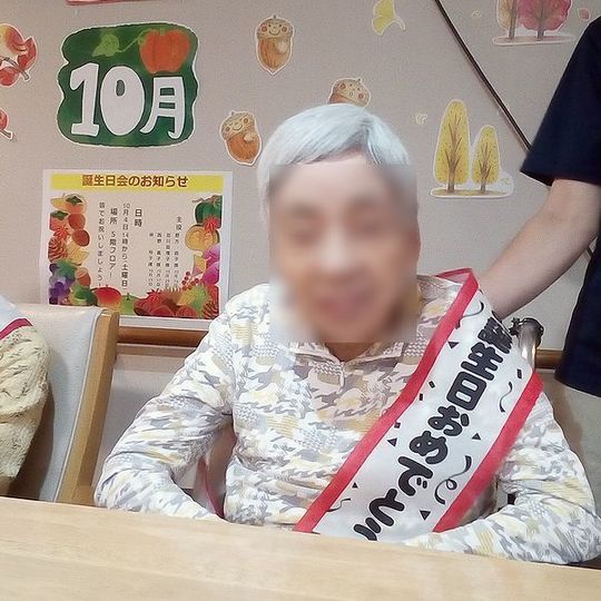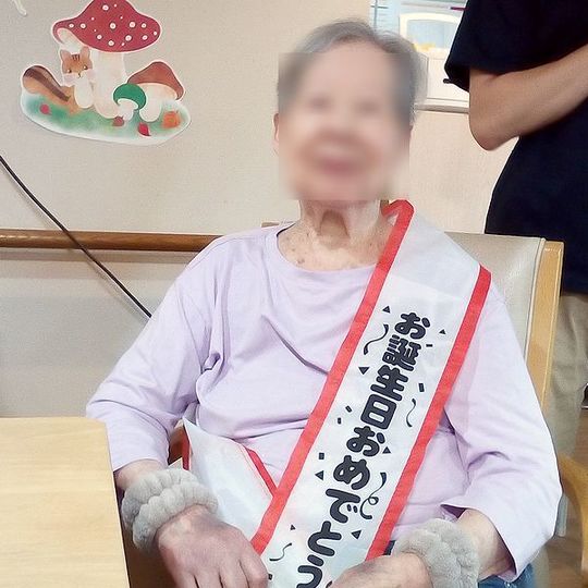 「なんだか照れくさいわ~」とほほえむお誕生日の利用者様。