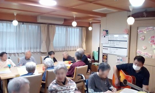 スイーツの後はギター伴奏とともに皆でお誕生日ソングや懐かしい名曲を歌いました。