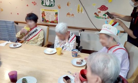 食欲の秋、皆様も楽しまれているでしょうか?!てとて本町では先日、10月生まれのご利用者様のお祝いにケーキバイキングを開催致しました。