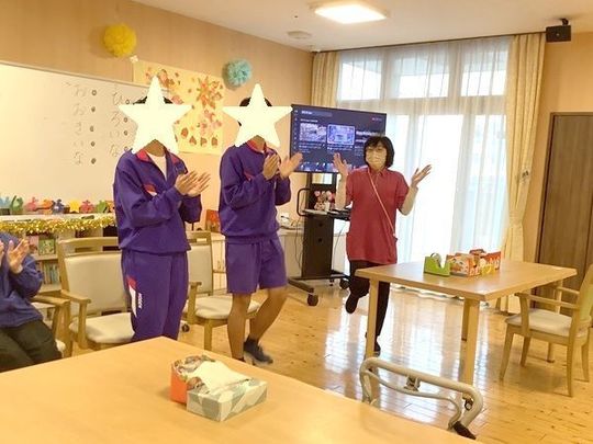 生徒さんは最初少し緊張した面持ちでしたが、入居者の皆様と誕生日の歌を歌ったり、踊ったりするうちに笑顔になり、入居者様にとっても若い世代とのふれあいで、心弾む、温かさあふれる一日となりました♪