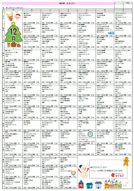 今月のメニューですが、12月はやっぱりクリスマス!!