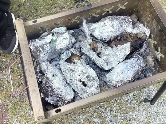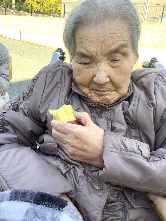 日没も早くなってきており、秋らしい日差しの中でお芋を焼き、寒そうにされながらも「美味しい」「温かいわ」と召し上がっておられました。
