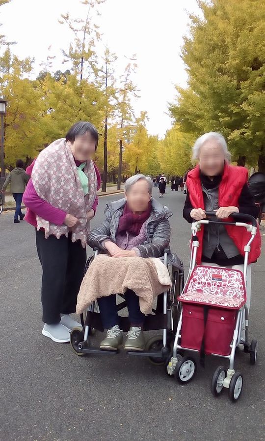帰り際に大阪城内を走っている汽車型のバス(ロードトレイン)が利用者様の前を通ったので、利用者様みんなで手を振ると乗客の方々も手を振り返して下さいました。