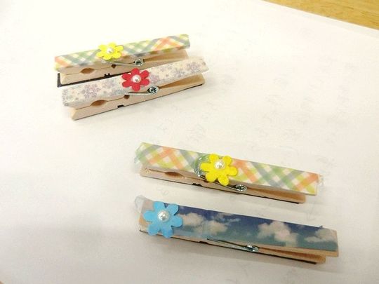 利用者様方にはマグネットシートやマスキングテープ等を木製クリップに貼り付けていくというシンプルな作業をして頂きました。