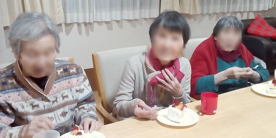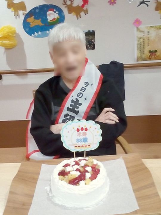 今年最後のお誕生日月の利用者様は3名おられました。その中のお一人の利用者様はご夫婦共にケーキ作りの趣味をおもちだったらしくご主人もケーキ作りに参加してくださいました。