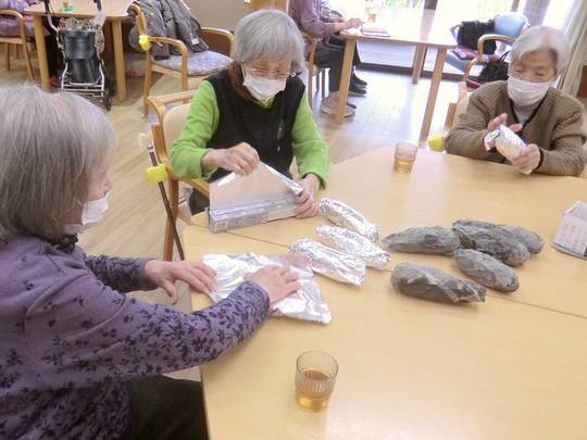 焼きあがったホクホクの焼き芋をおやつに召し上がって頂きました。