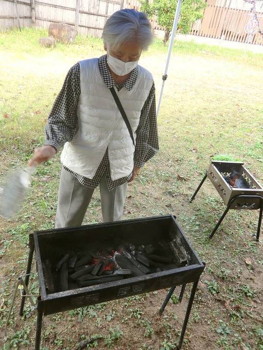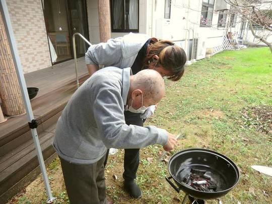 職員が庭で火起こししていると、窓から覗かれたり、「手伝うわ!」と何人かの利用者様に火起こしを手伝って下さりました。